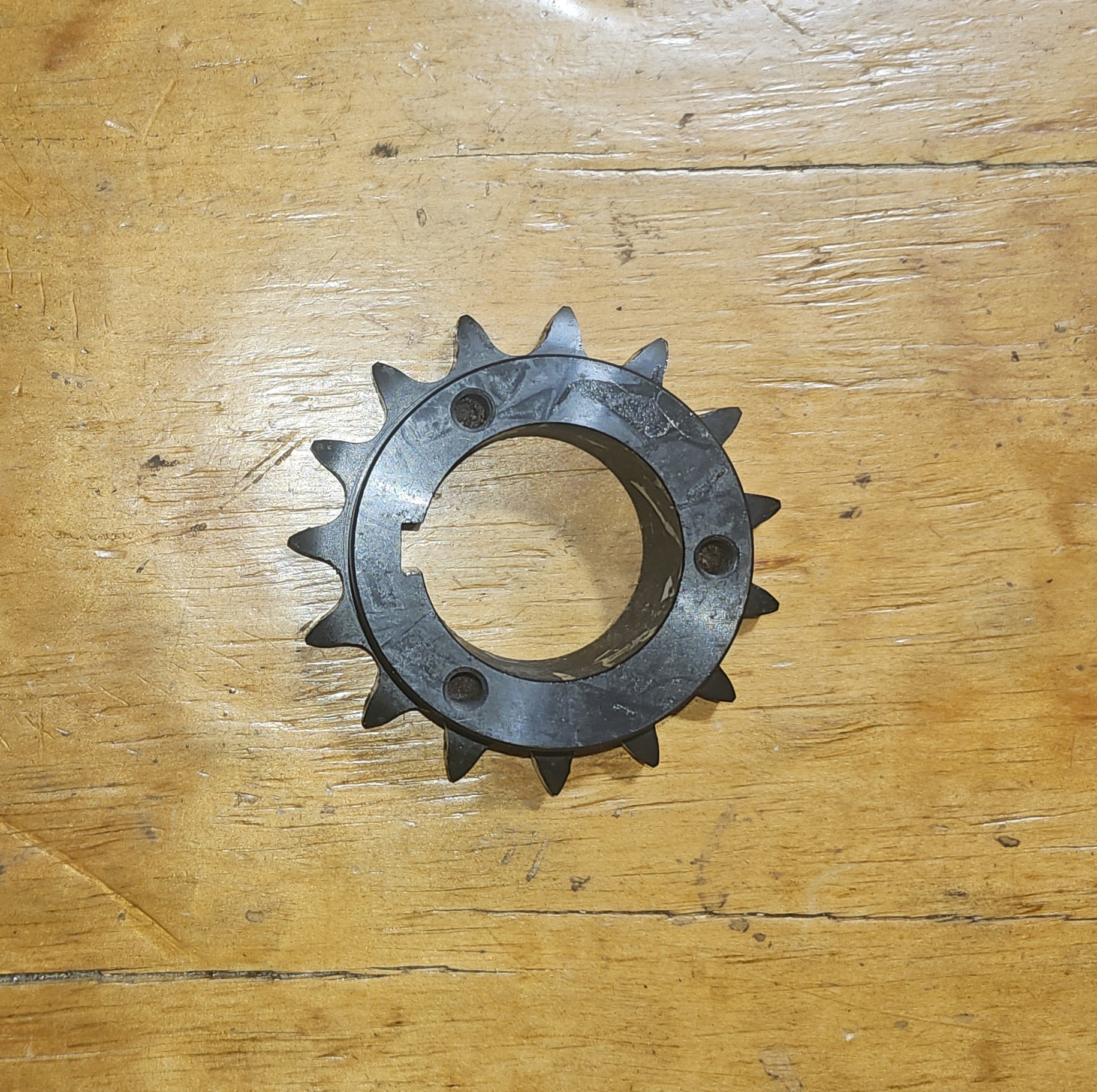This single strand, P sprocket for a #60 chain has 15 teeth.