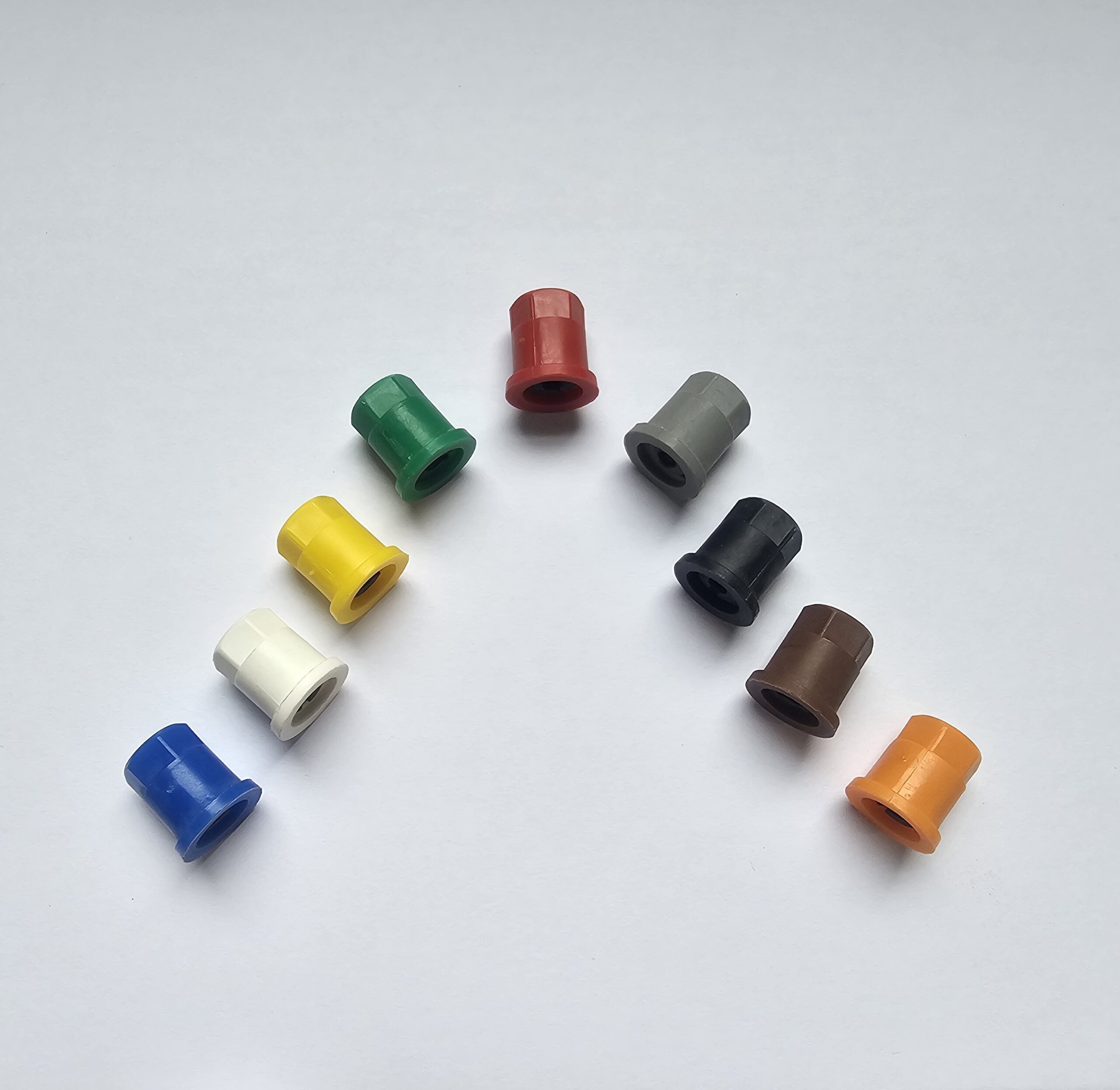 Stainless steel, hollow cone spray pattern tip in polypropylene, color coded body.