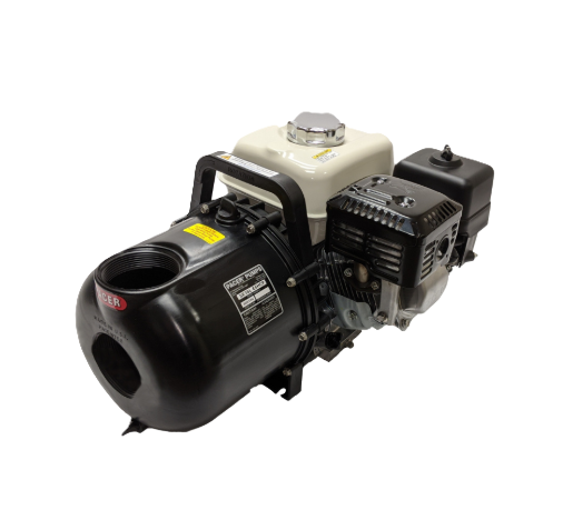 This is a self-priming, liquid transfer, centrifugal pump with a gasoline Honda GX200 engine. Built in check valve. Self-cleaning double volute.